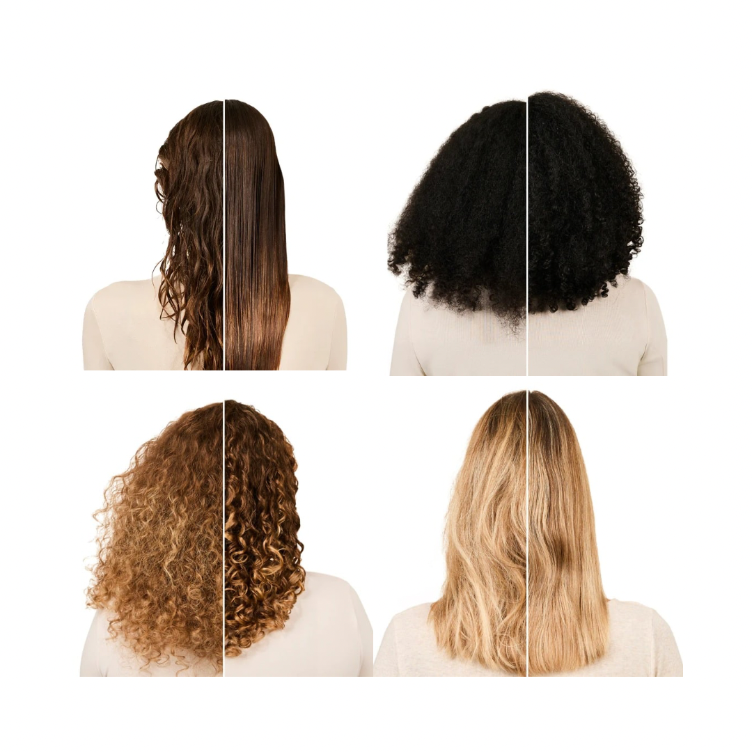 Conçue pour tous types de cheveux : bouclés, raides, épais ou fins.